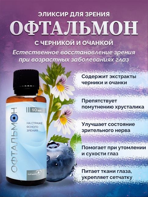 «Офтальмон» улучшает микроциркуляцию, питает сетчатку, поддерживает работу зрительного нерва и снижает окислительный стресс, влияющий на прозрачность хрусталика.